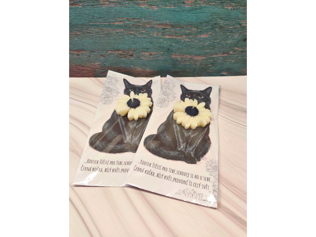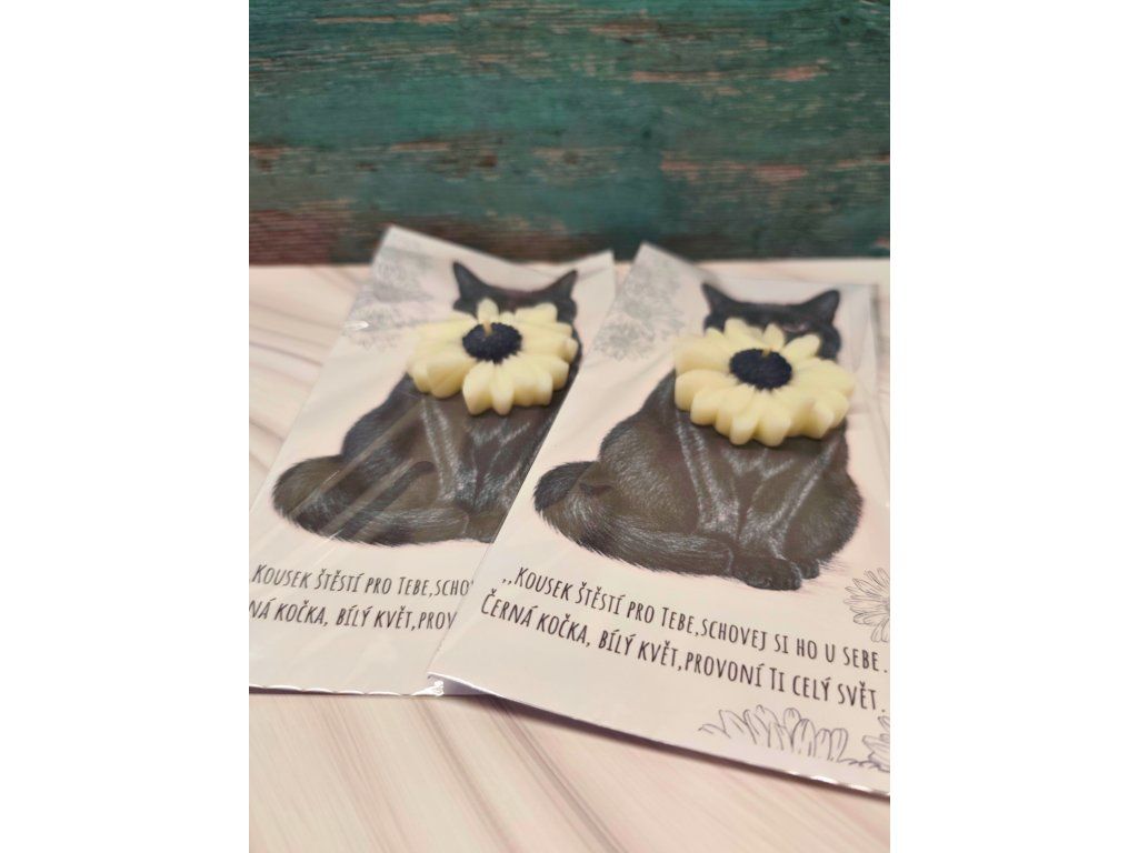 Kousek štěstí pro tebe... provoní ti celý svět." Jemná bílá květina na elegantním černém podkladu pro chvíle pohody.