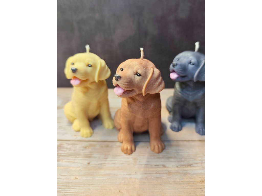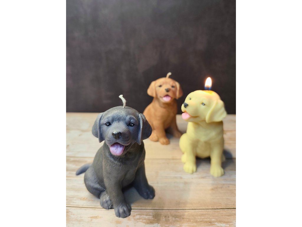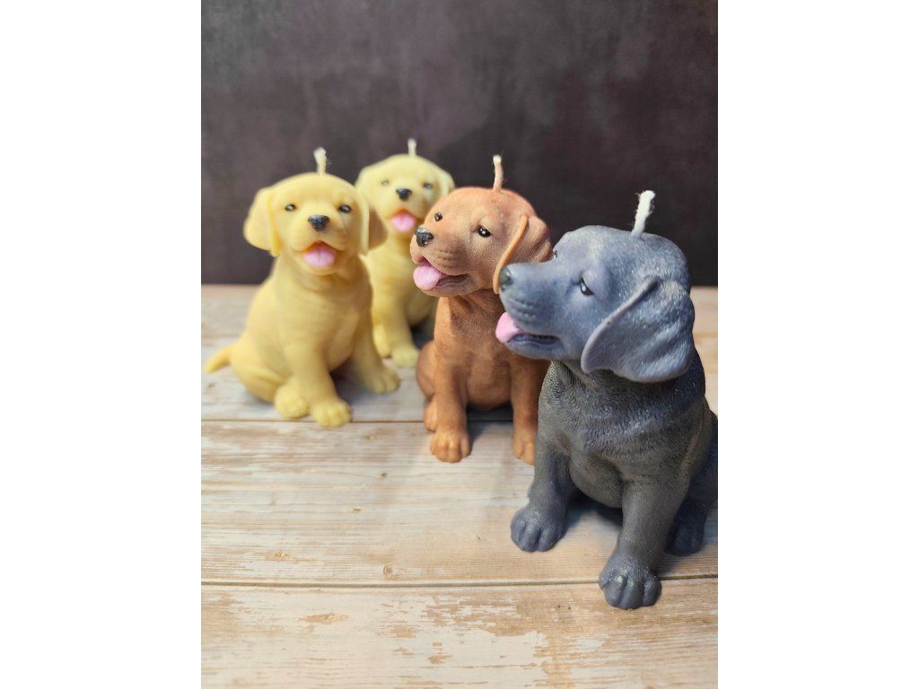 Moje detailně propracovaná svíčka ve tvaru sedícího labradora zachycuje radost a věrnost tohoto oblíbeného plemene do posledního chloupku.