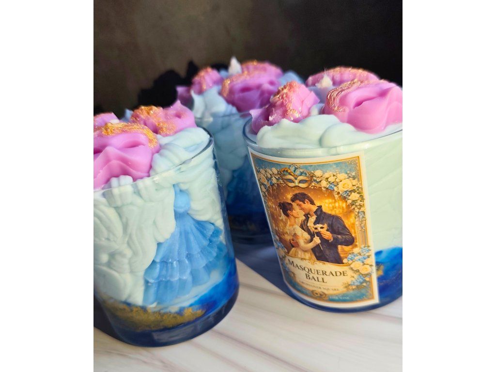 Tato svíčka není jen zdrojem světla, ale uměleckým dílem, které vás přenese přímo do středu maškarního plesu.