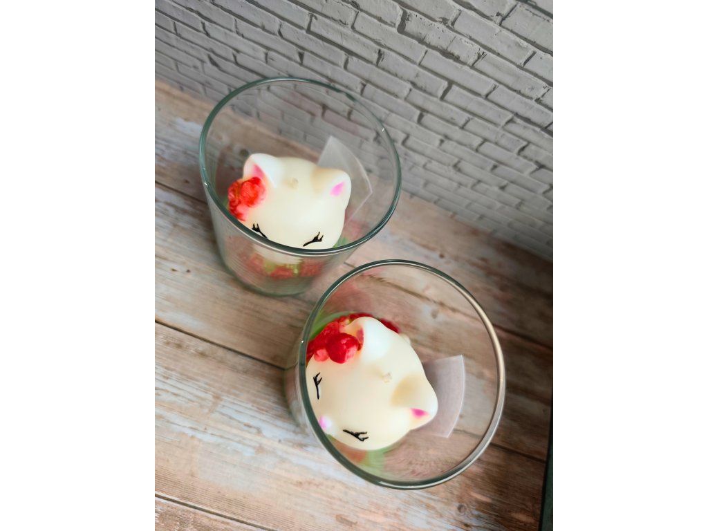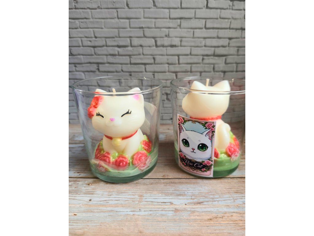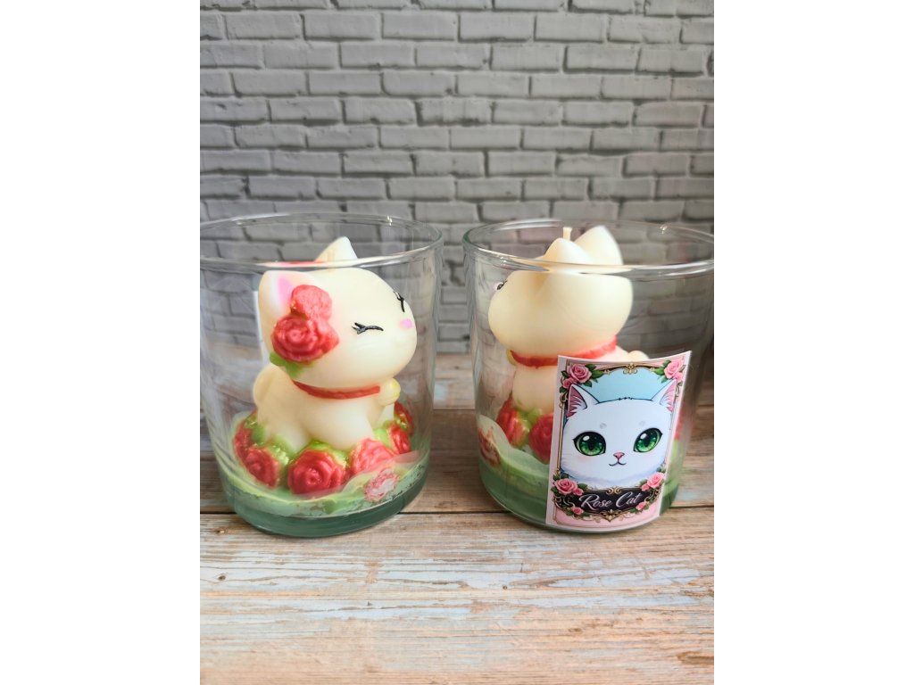 Svíčka Rose Cat spojuje čistý design sklenice s hravou dekorací, která z ní dělá nejen zdroj světla, ale i krásný doplněk interiéru. Každý kus je ručně odlévaný, takže je originál — žádná sériová výroba.