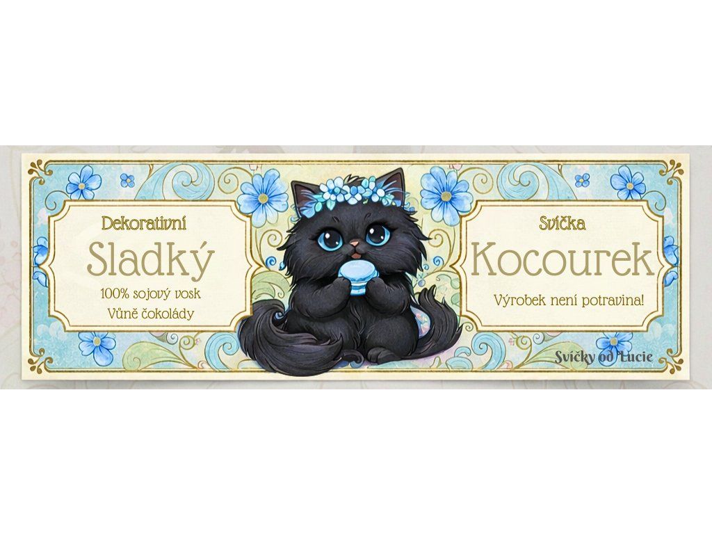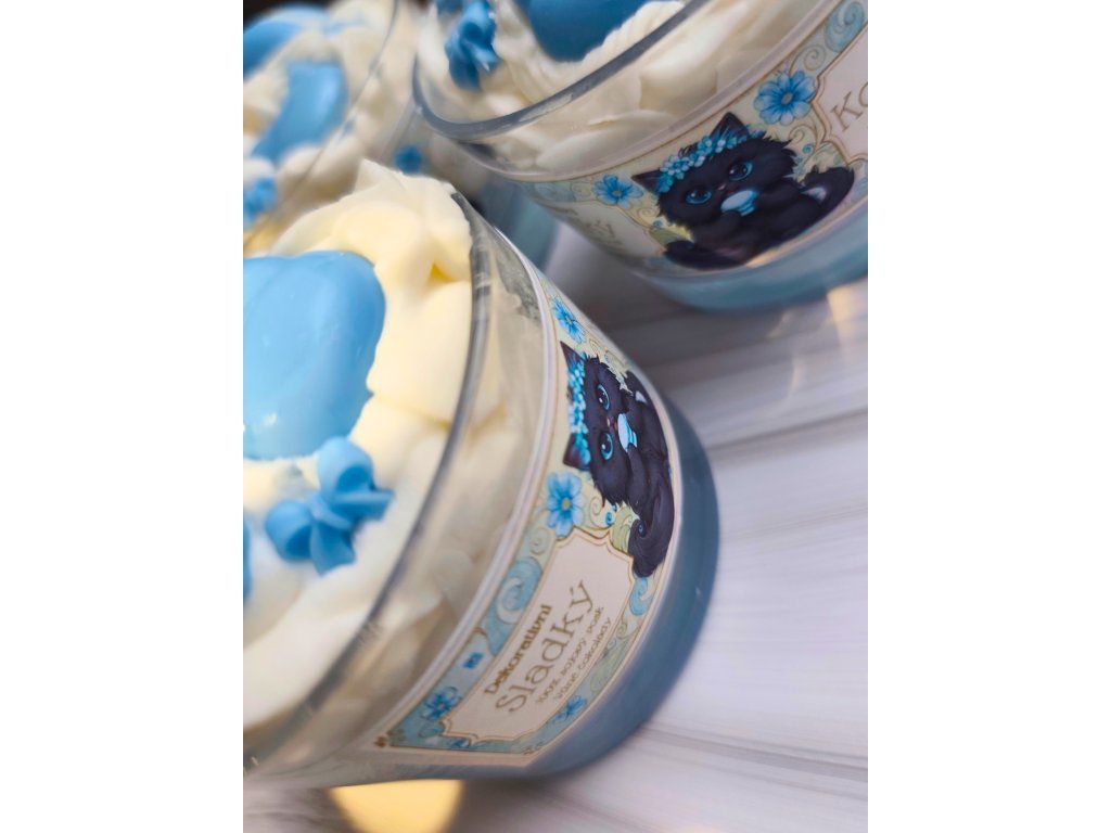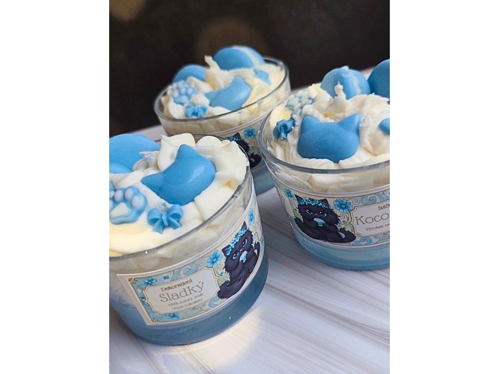 Modrý kocourek“ je ztělesněním hravé elegance. Tato svíčka kombinuje jemné odstíny modré barvy s neuvěřitelně konejšivou a hlubokou vůní čerstvé mléčné čokolády. Bohatá vrstva ručně šlehaného vosku je doplněna o detaily kočičích tlapek a motivu kočičí hlavy, což z ní dělá naprostý unikát mezi dekoracemi.