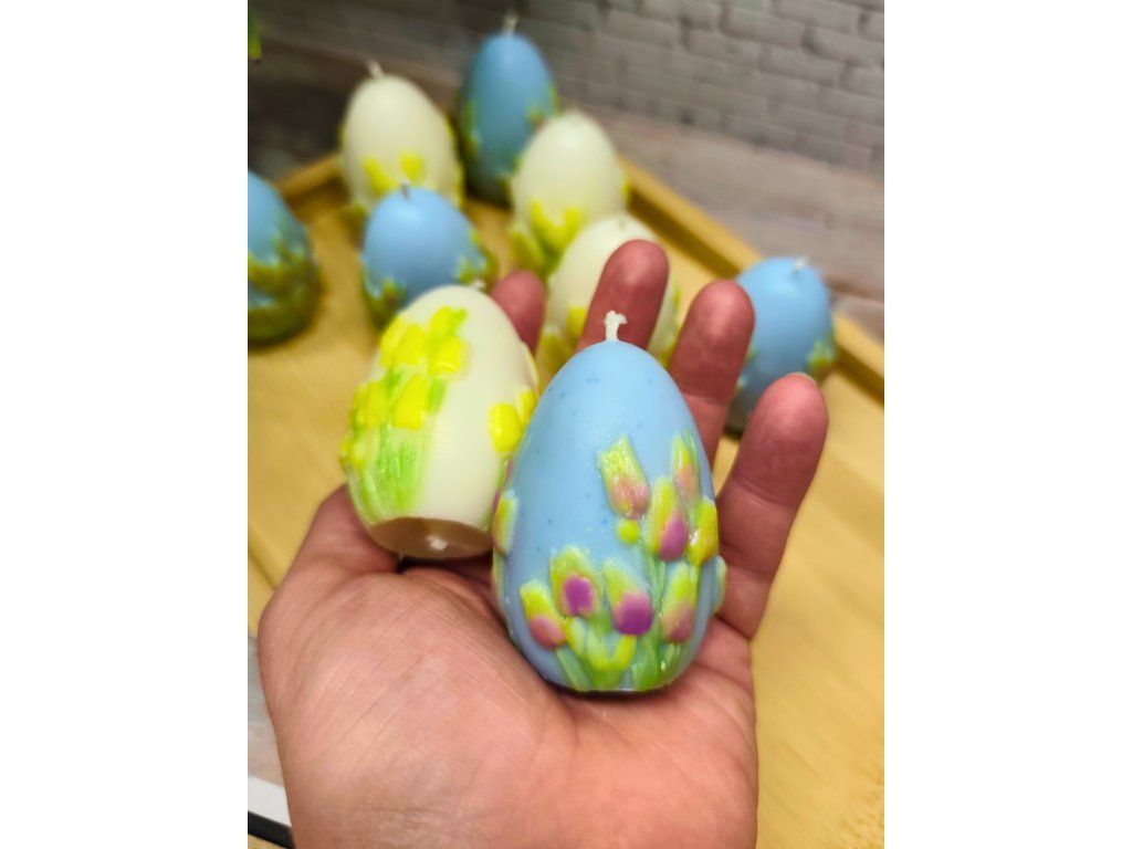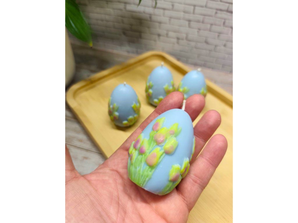 Přivítejte jaro s elegancí a něhou. Moje svíčky ve tvaru vajíček s reliéfem tulipánů jsou oslavou probouzející se přírody. Každý kus projde mýma rukama – od odlití z kvalitního vosku až po detailní ruční malbu, díky které je každý květ na svíčce jedinečný.